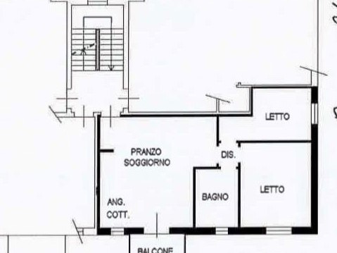 ingresso su ampio soggiorno con cucina a vista e balcone, balcone con vista campagna, disimpegno notte, 1 camera da letto matrimoniale, 1 camera singola, bagno.