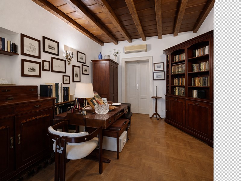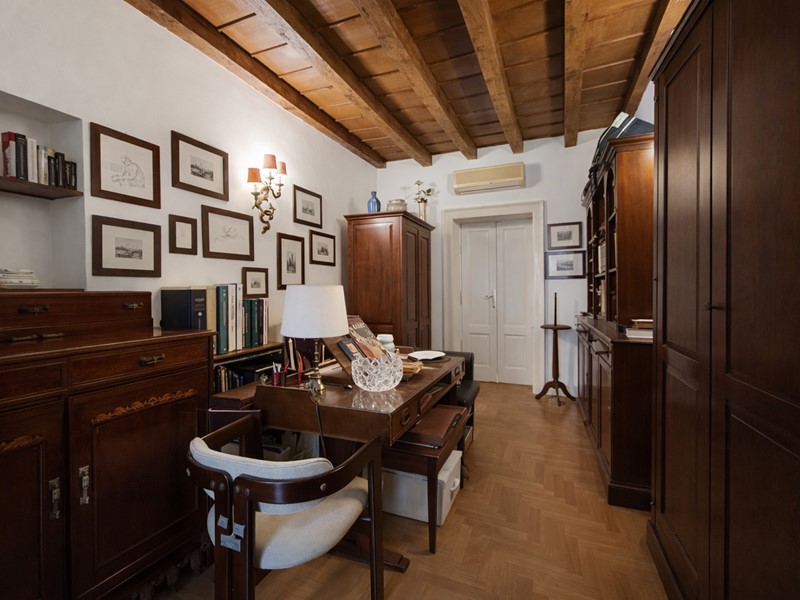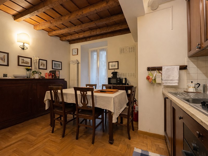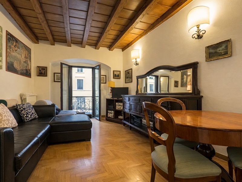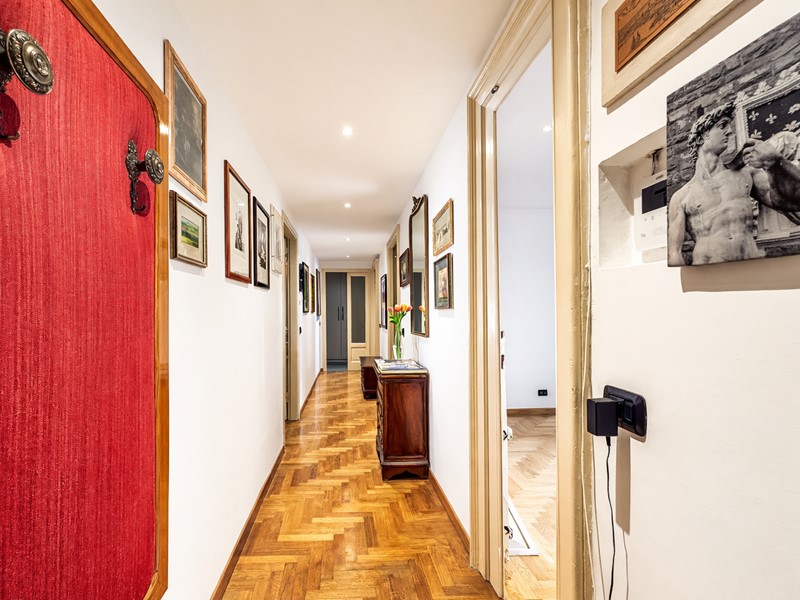 L'appartamento si sviluppa attraverso un ingresso accogliente che conduce a un disimpegno centrale, il quale permette l'accesso a tutti gli ambienti della casa. Il soggiorno, offre una vista sulla Via dove si intravede l'incantevole Arco della Pace, creando un'atmosfera suggestiva e rilassante. La cucina, ampia e abitabile, è dotata di accesso diretto a un balcone che si affaccia su un cortile interno, garantendo così quiete e privacy.