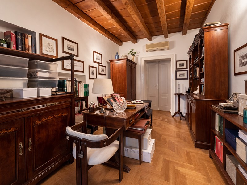 Le finiture dell'appartamento sono di elevato pregio: la pavimentazione in parquet omogenea in tutti gli ambienti, ad eccezione del bagno dove troviamo eleganti piastrelle, conferisce calore e raffinatezza. Le splendide travi a vista arricchiscono ogni camera, mentre i condizionatori presenti in tutti gli spazi assicurano un clima piacevole durante tutto l'anno. In aggiunta, le zanzariere sono installate su tutte le finestre, garantendo una vivibilità ottimale.