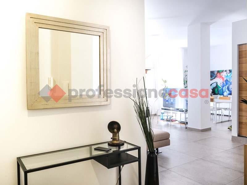 L'appartamento dispone di 2 ingressi, un ampio living open space con cucina a vista, 3 camere da letto, 2 cabine armadio, 3 bagni, disimpegno alla zona notte, giardino d'inverno/relax fitness, terrazzo e balcone.
