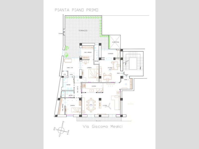 Completa la proprietà un giardino d'inverno dove trascorrere il tempo libero ed organizzare una zona relax fitness. Il terrazzo è corredato di pergolato e angolo barbeque. La presenza di due ingressi offre la possibilità di realizzare uno studio professionale, disimpegnato dal resto dell'appartamento, di generose dimensioni con bagno di esclusivo utilizzo.