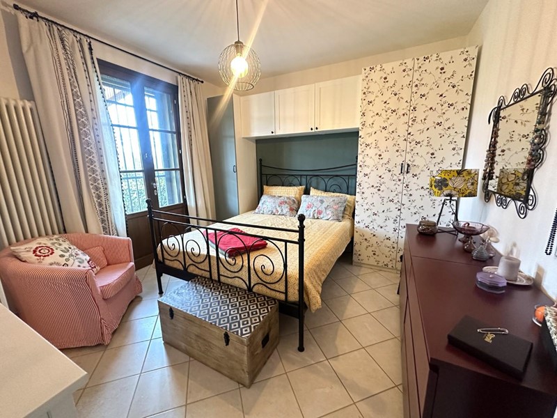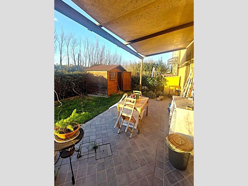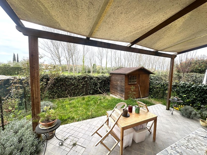L'unità posta ad un piano rialzato, dotata di ingresso indipendente da ampio resede carrabile dal lato est, offre uno spazio luminoso e ben distribuito. che si sviluppa verso il lato ovest: pratico salottino d'ingresso, con doppia porta finestra, cucina semiabitabile dalla quale si accede al giardino, piccolo disimpegno, bagno con finestra, ampia camera matrimoniale con piacevole affaccio sul verde.