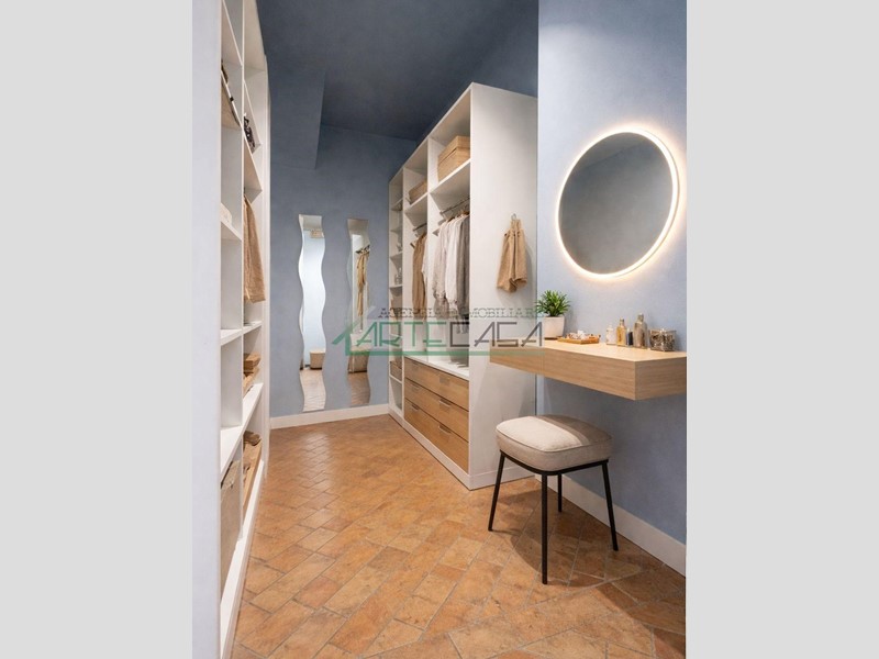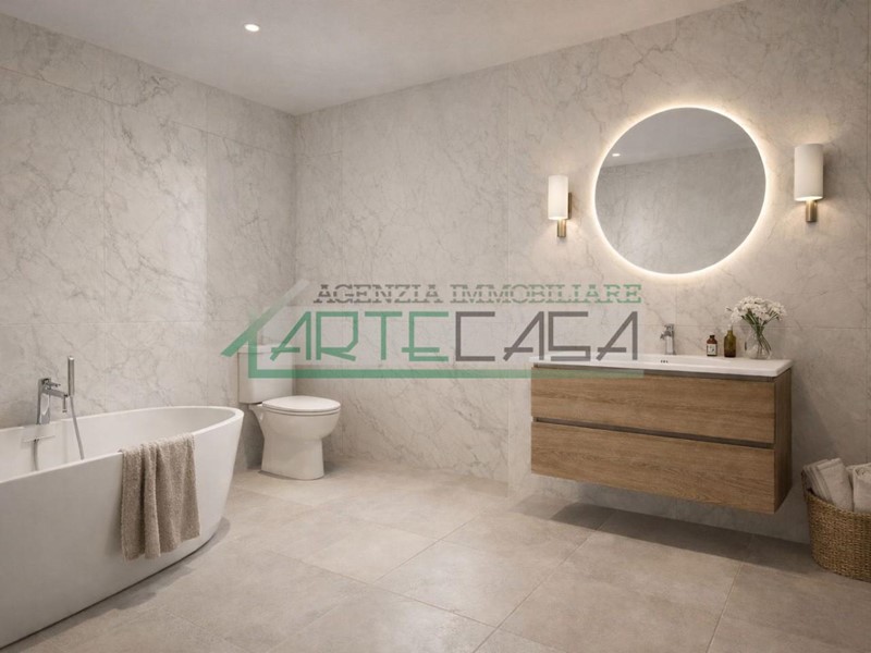 L’ingresso si apre su un ampio e luminoso soggiorno con cucina a vista, un ambiente accogliente e ideale per la vita quotidiana. Un disimpegno conduce alla zona notte, dove trovano spazio due camere matrimoniali — una dotata di elegante cabina armadi — un bagno di servizio finestrato con zona lavanderia, un pratico ripostiglio e un ampio bagno principale, anch’esso finestrato, dotato di vasca.