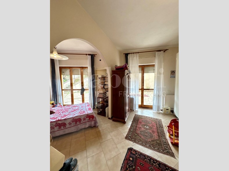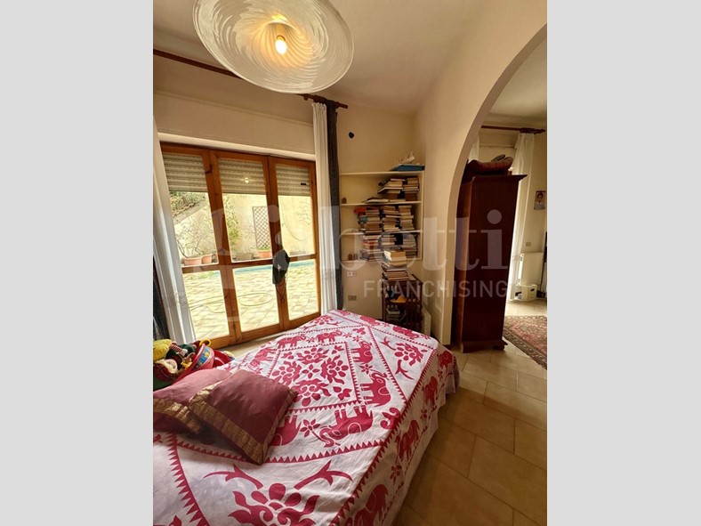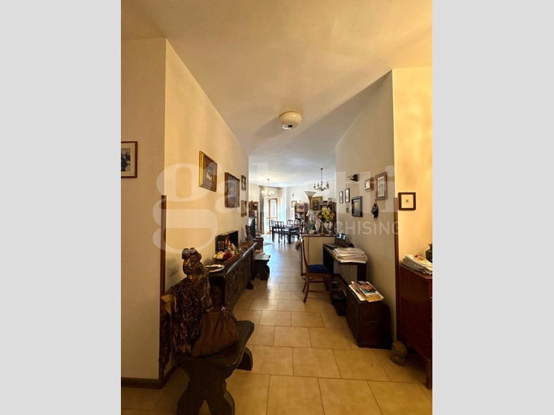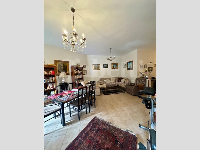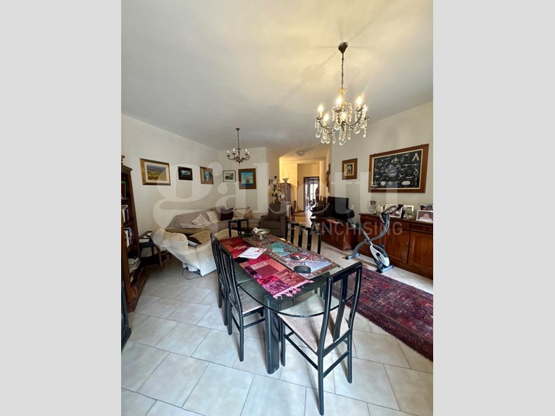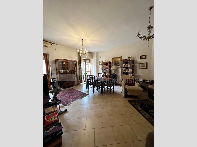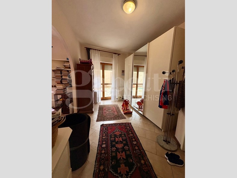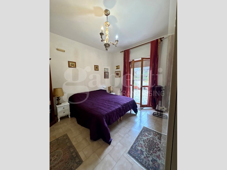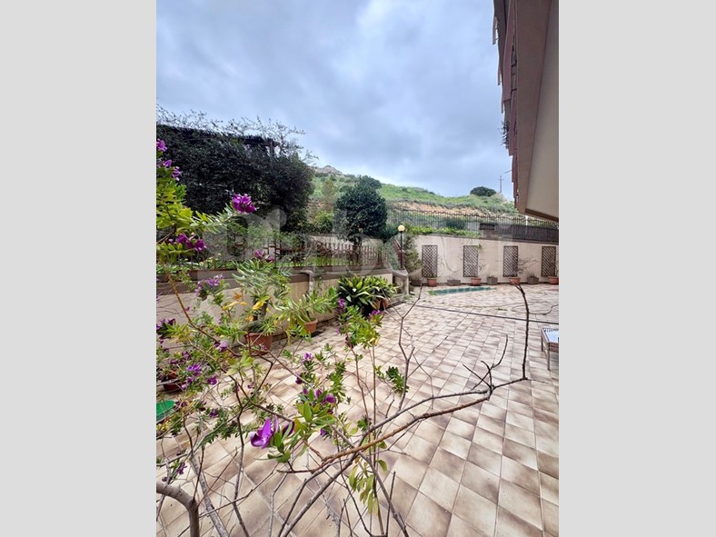 L'immobile, un quadravano di 125 mq, si trova al primo piano alto ed è composto da ingresso su disimpegno, ampio soggiorno con accesso diretto a un grande cortile privato, cucina abitabile con balcone interno affacciato sul cortile condominiale, che si ricollega e permette l'accesso al cortile di proprietà. La zona notte comprende tre camere da letto, un bagno completo e un bagno di servizio.