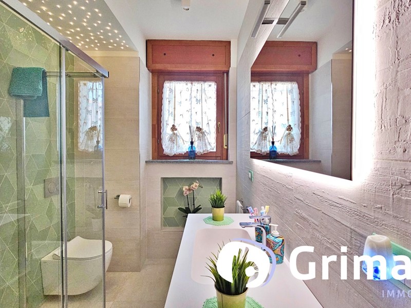 L'abitazione è dotata di numerosi comfort e soluzioni tecnologiche pensate per migliorare la qualità della vita quotidiana: climatizzazione caldo/freddo con split nel soggiorno e nelle camere, zanzariere su tutte le finestre e nell'area patio, teleriscaldamento gestibile in autonomia tramite termostato domotico BTicino programmabile anche da remoto, impianto di irrigazione domotico a quattro zone per la gestione automatizzata degli spazi esterni e videocitofono controllabile a distanza. I bagni sono inoltre impreziositi da illuminazione con cromoterapia, mentre il bagno finestrato ospita una pratica zona lavanderia con spazio per lavatrice e asciugatrice.