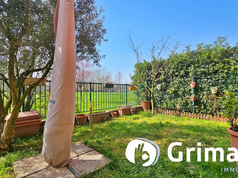 L'ingresso si apre su una spaziosa zona living con cucina a vista, un ambiente conviviale e luminoso che affaccia direttamente sul giardino privato, ideale per momenti di relax all'aperto o per ricevere amici e familiari. La zona notte, ben separata da un comodo disimpegno, ospita una camera matrimoniale, una cameretta e due bagni, di cui uno finestrato con spazio dedicato alla lavanderia.