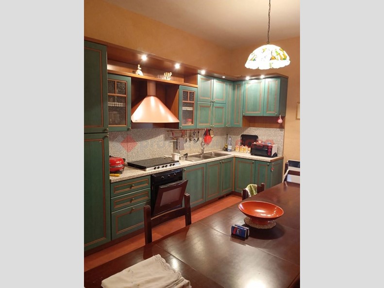 La soluzione risulta in buone condizioni ed è cosi composta; ampio ingresso/disimpegno, salone con camino e cucina, balcone, ripostiglio, disimpegno, tre grandi camere da letto e un servizio con doccia.