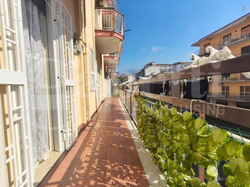 Ercolano, in Via Guglielmo Marconi, in zona centrale e ben servita da molteplici attivita' commerciali, proponiamo in vendita: ampio e SOLEGGIATO, appartamento di 3 vani + acc.ri. L'immobile, posto in parco ben tenuto con servizio di portierato intera giornata, si sviluppa per una superfice interna di circa 90 mq, composto da: ingresso su salone, 2 ampie camere, cucina abitabile, servizio con antibagno munito di armadio a muro e ripostiglio soppalcato. L'appartamento, sito al primo piano in fabbricato munito di ascensore, gode di un'unica esposizione luminosa su strada, servita da un'ampia balconata, con cancelli e tendaggi da sole. Le rifiniture interne comprendono un condizionatore CALDO/FREDDO posto nella camera da letto matrimoniale e porta d'ingresso blindata con sistema d'accesso elettrico.