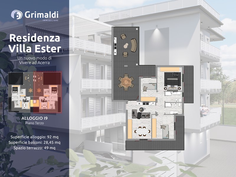 Grimaldi Immobiliare Acerra propone in esclusiva Residenza Villa Ester, il nuovo intervento residenziale che ridefinisce il modo di vivere ad Acerra. Un complesso moderno ed elegante, progettato per offrire ampie quadrature, comfort abitativo superiore, materiali di pregio e alta efficienza energetica.