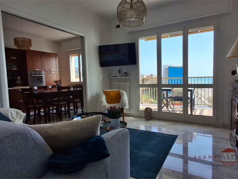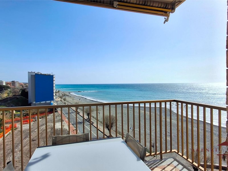 L'agenzia immobiliare Garibaldi vende in esclusiva raro appartamento fronte mare sulla spiaggia di Vallecrosia, sito all'interno di un signorile condominio con belle finiture interne ed esterne\n\nL'appartamento si trova al 4° piano e gode di bellissimo panorama aperto sul mare e sulle colline di Bordighera, con esposizione est-sud-nord.\nGli interni sono eleganti e luminosi, con ampio uso di marmo naturale, porte e finestre di qualità.\n\nL'ingresso su bel disimpegno permette di accedere subito al luminoso soggiorno aperto sul mare, ampio balcone comodo per godere il sole, cucina abitabile a vista che può essere chiusa da bella porta scorrevole.\nLa zona notte è ben divisa in camera da letto matrimoniale, bagno ristrutturato, cameretta singola con balcone di servizio.\n\nTutte le finiture e gli arredi sono di ottima qualità e di grande valore economico, rendendo questo appartamento una rara occasione per che cerca una vista mare completa e la comodità delle spiagge sotto casa.\n\nCompleta la proprietà un comoda cantina
