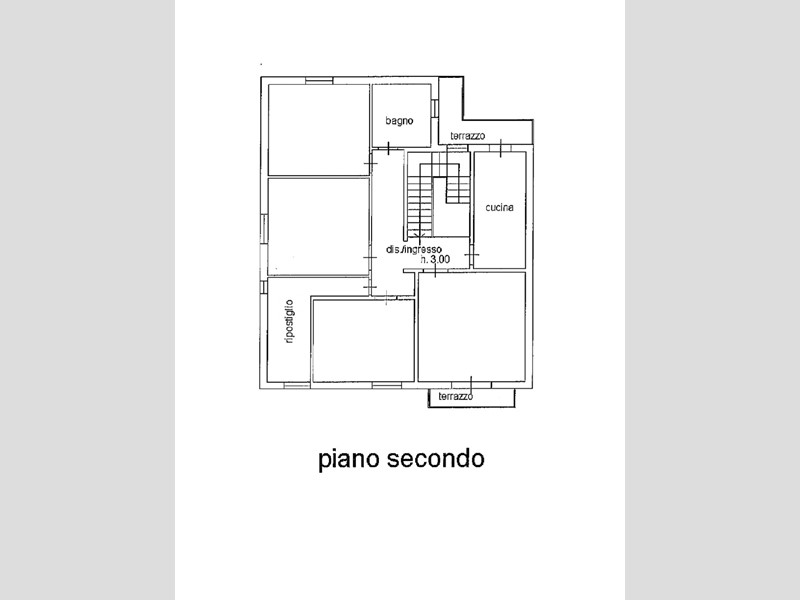 Attraverso scala si sbarda al piano secondo , ingresso , cucina abitabile con balcone, ampio salotto con balcone , ripostiglio finestrato , TRE camere matrimoniali, ampio servizio finestrato.