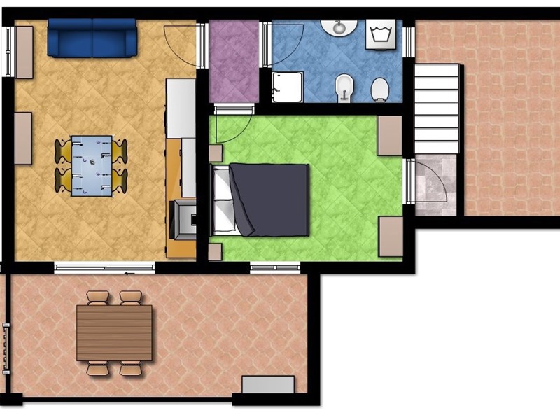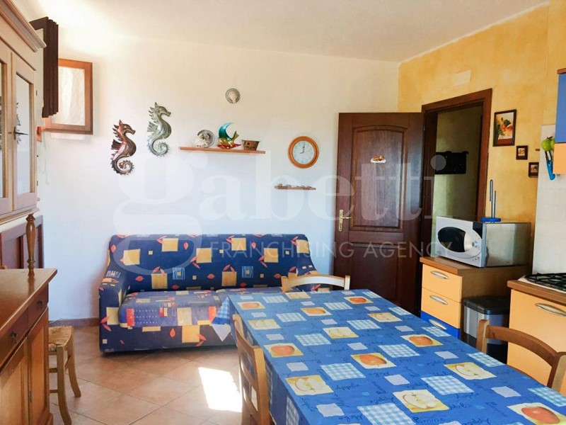 L'appartamento, situato al piano terra, gode di una meravigliosa vista sul mare con l'isola di Tavolara sullo sfondo incorniciata dalla natura circostante. Lasciata la macchina nel posto auto affianco allo stabile, entriamo nella veranda vivibile, spazio ideale in cui trascorrere momenti di relax e godere dell'impareggiabile vista. L'ingresso è diretto sulla zona giorno completa di angolo cottura. Nel disimpegno si affacciano la camera matrimoniale dotata di accesso diretto ad una funzionale corte, il bagno completo con box doccia. Dalla veranda frontale, tramite la scala, si accede al monolocale di circa 30mq sito al piano seminterrato così composto: ampia zona giorno con angolo cottura dove poter sistemare un divano letto, bagno con box doccia e lavatrice.