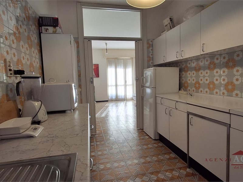L'appartamento in vendita esclusiva offre tutte le comodità del centro di Bordighera seppur lontano dal traffico e dal rumore.\nTutto l'ambiente circostante è ricco di alberi, giardini e piccole palazzine\n\nL'alloggio è sito al secondo piano di condominio dotato di giardino comune ad altri palazzi, ascensore dal piano terra, riscaldamento centralizzato\nL'ambiente interno è molto luminoso con esposizione a pieno sud, con finiture originali della costruzione ben tenute e ancora esteticamente funzionali\nLa casa è composta da ampio ingresso su disimpegno, grande camera matrimoniale, soggiorno con accesso al balcone abitabile, locale cucina (eventualmente trasformabile in cameretta), grande bagno finestrato che si può facilmente dividere in due più piccoli.\n\nIl garage a piano terra è molto profondo e potrebbe ospitare fino a due macchine in fila\nLa cantina è di comodo accesso e ben asciutta