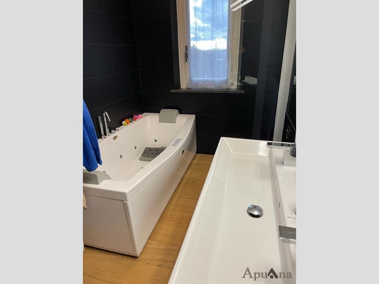 Massa, località Quercioli. Si vende in esclusiva bellissimo appartamento posto al piano primo e ultimo di piccolo condominio di recente realizzazione con posto auto scoperto di proprietà all'interno del parcheggio condominiale. L'appartamento è accessibile da un vano scala comune con il solo appartamento del piano terra. Al suo interno si compone di ingresso, soggiorno con camino e bella terrazza pranzabile, cucina abitabile con terrazza, ampio disimpegno, camera matrimoniale con terrazza e grande bagno interno dotato di doccia e vasca idromassaggio, seconda camera matrimoniale (o doppia) e secondo bagno con doccia e lavanderia. Immobile con finiture di pregio e venduto arredato - Possibilità di acquisto di un garage posto al piano interrato del condominio, di ampie dimensioni (24 mq), che viene utilizzato come cantina o per il parcheggio di piccole autovetture in quanto non di facile accesso.