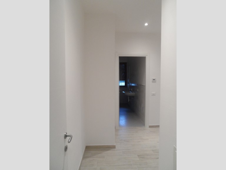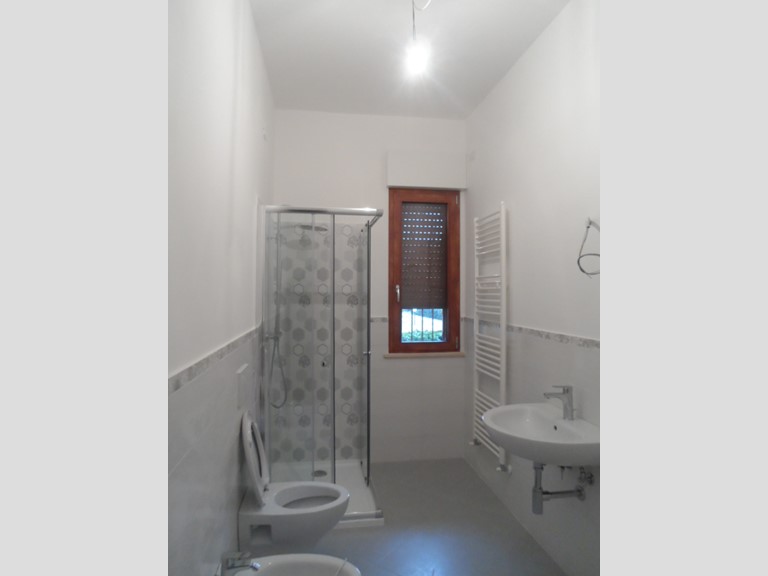 L'unità immobiliare con esposizione ovest-est è composta da : soggiorno con angolo cottura, disimpegno ,camera matrimoniale, camera doppia, bagno finestrato con sanitari sospesi e box doccia.