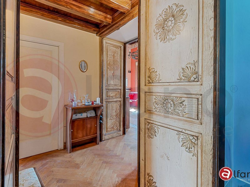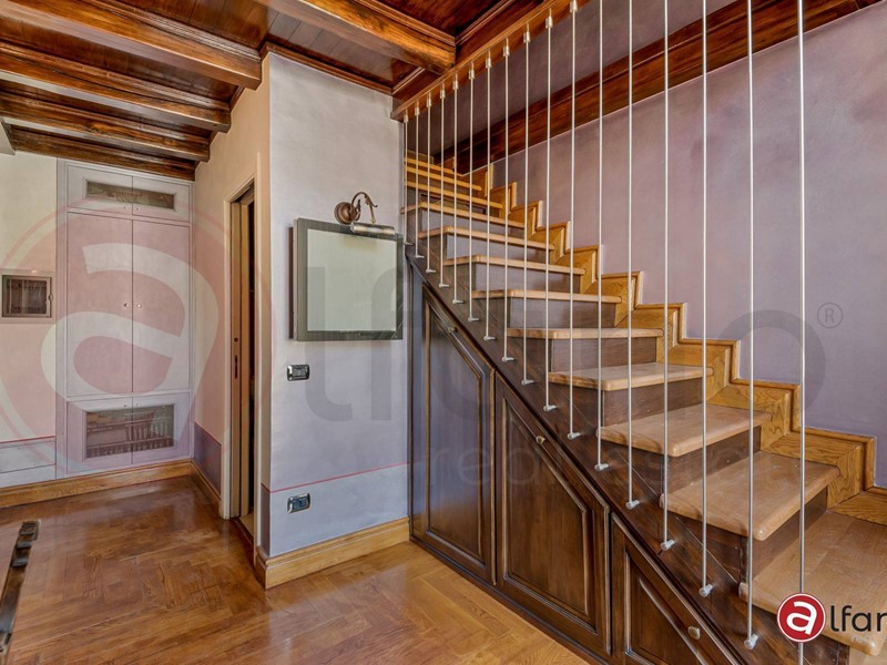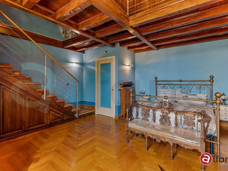 I soffitti con travi in legno a vista raccontano una storia di artigianalità e solidità, mentre ogni stanza conserva un carattere unico, fatto di proporzioni generose, prospettive ariose e dettagli ricercati.