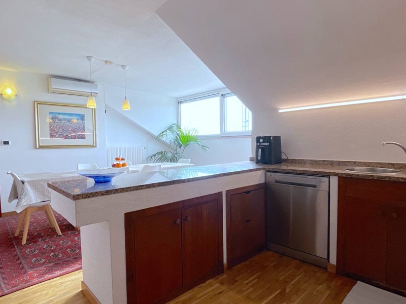 Lappartamento occupa lintero ultimo piano dello stabile, situato in seconda fila rispetto al mare, a soli 50 metri dal lungomare. Pur non disponendo di balconi, lesposizione verso sud consente di godere di una gradevole vista mare da tutte le finestre rivolte verso la spiaggia.