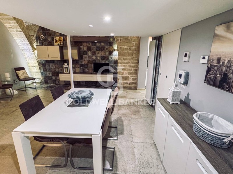 Limmobile è stato completamente ristrutturato da un noto architetto, con un attento lavoro di valorizzazione degli elementi originari e limpiego di materiali ricercati per esaltare lautenticità storica del palazzo e le caratteristiche tipiche pugliesi. Le splendide volte in pietra a vista dialogano armoniosamente con finiture moderne ed eleganti.