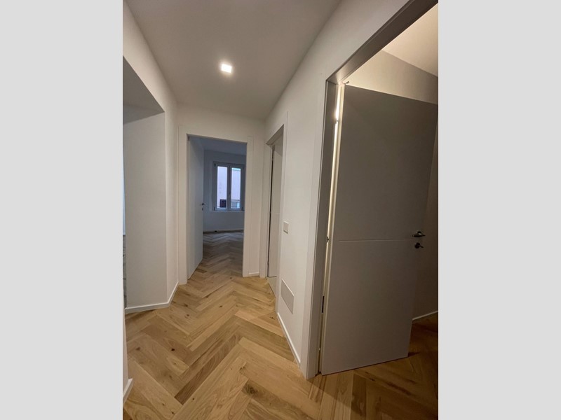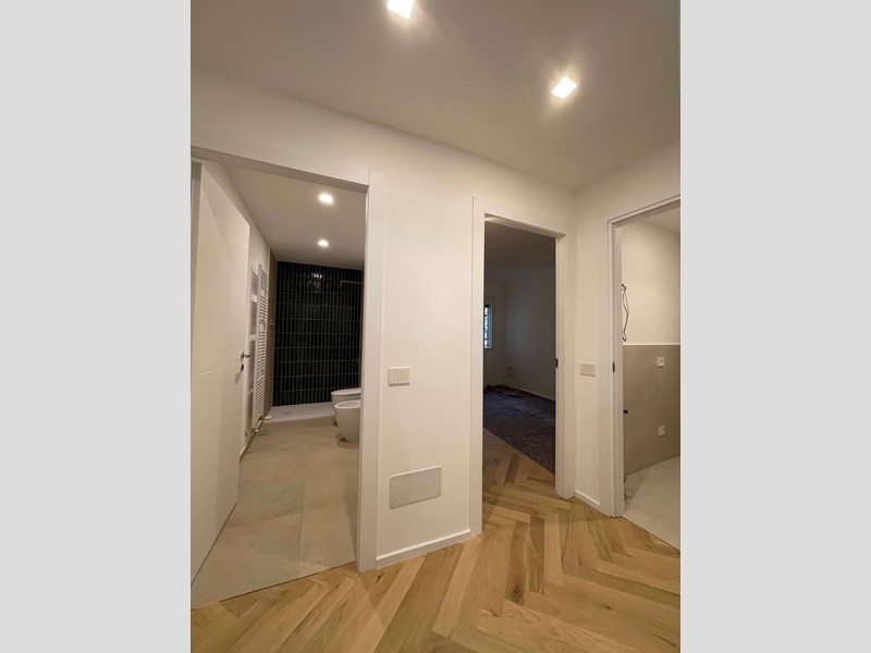 Gli ambienti sono impreziositi da una ricercata pavimentazione in parquet posato a spina di pesce che conferisce eleganza e continuità agli spazi interni. Al piano terra completa la proprietà una pratica cantina privata, utile come spazio accessorio e di servizio.