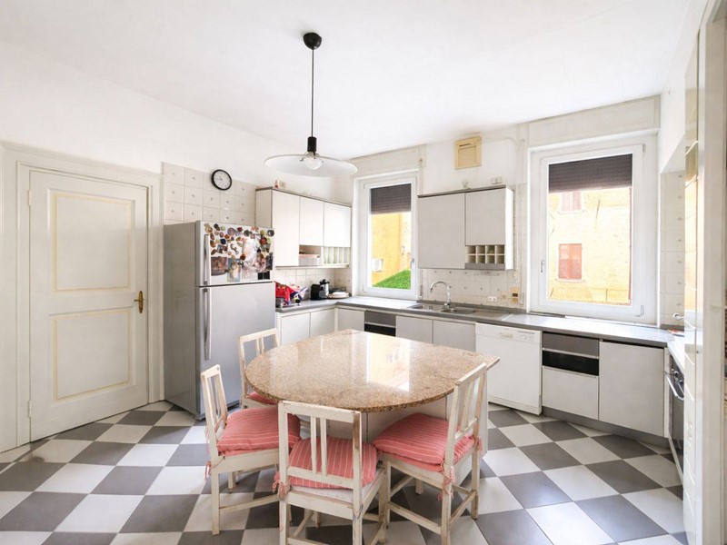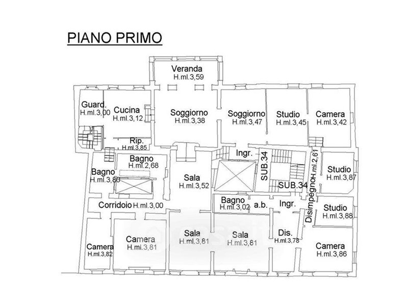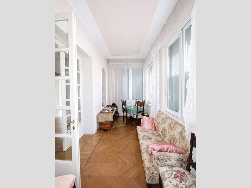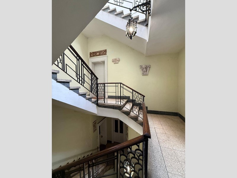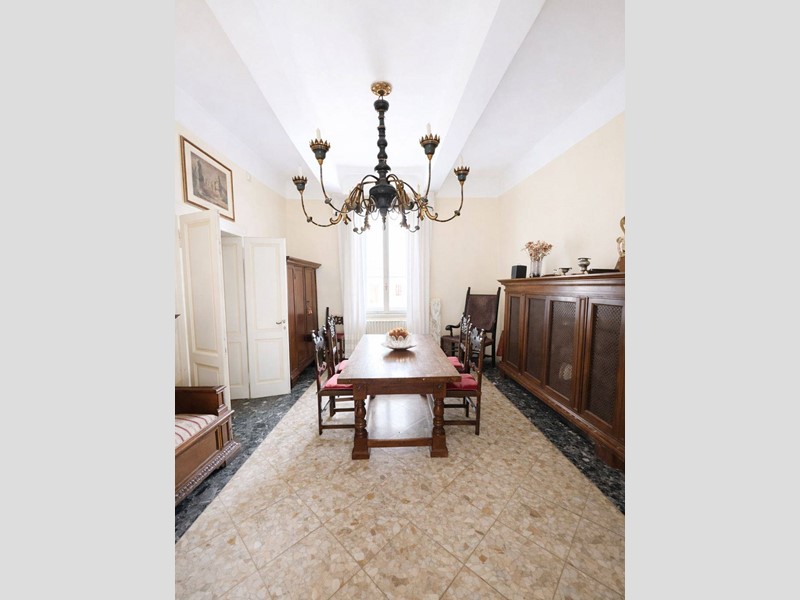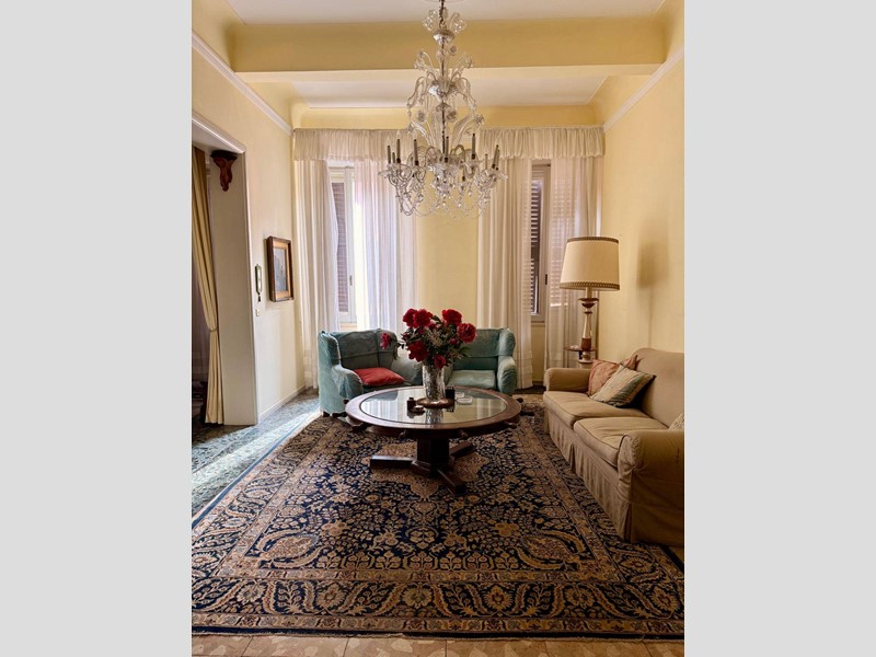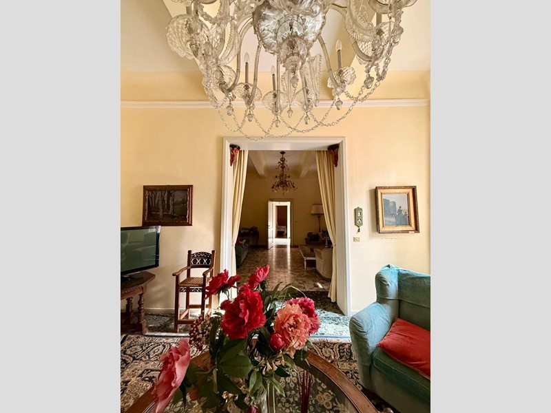 L'immobile è sito al piano primo senza ascensore ed è attualmente composto da due ingressi, grande soggiorno con zona pranzo e veranda, cucina abitabile con zona lavanderia, salone, quattro camere da letto, tre studi e tre bagni.