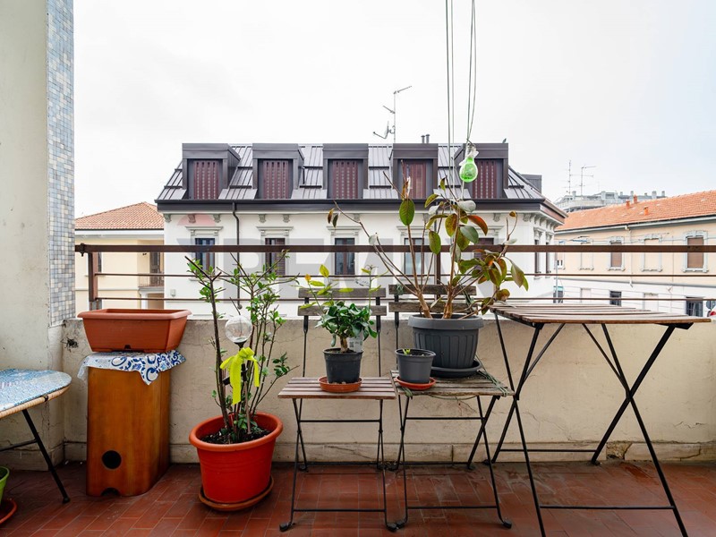 Lingresso conduce alla zona giorno composta da soggiorno con angolo cottura con accesso a un piacevole balcone affacciato su Via Cardinal Ferrari.