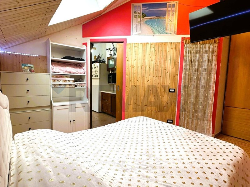 Nella zona notta troviamo una spaziosa camera matrimoniale e un bagno moderno e finestrato, dotato di box doccia. Entrambi i locali hanno accesso diretto a un secondo terrazzo privato, garantendo una doppia esposizione e una luminosità eccezionale in ogni ora del giorno.
