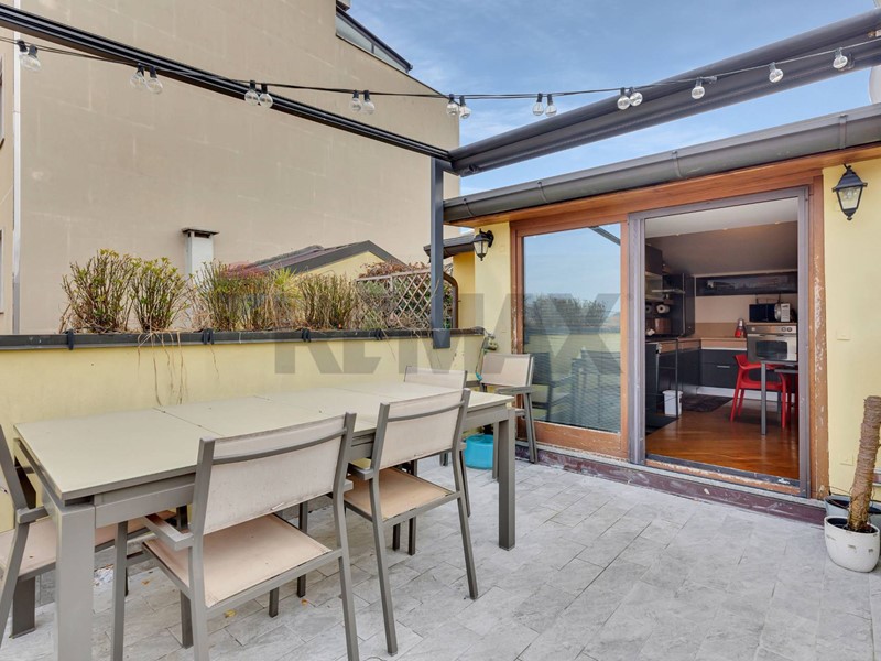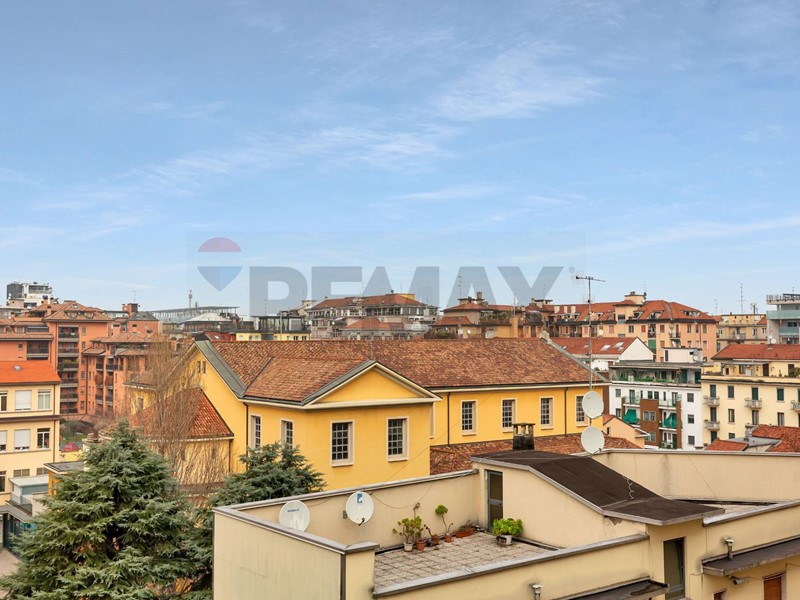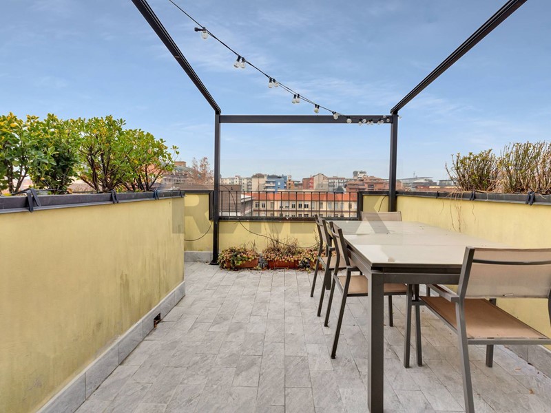 Proprio dalla cucina si accede ad una splendida terrazza panoramica, vero elemento distintivo e rarissimo per Milano. Uno spazio aperto, senza ingombri visivi, che permette di godere di una vista ampia sulla città, con un panorama che nelle giornate più limpide si estende fino alle Alpi, creando un contesto perfetto per momenti di relax allaperto o per condividere piacevoli serate con amici.