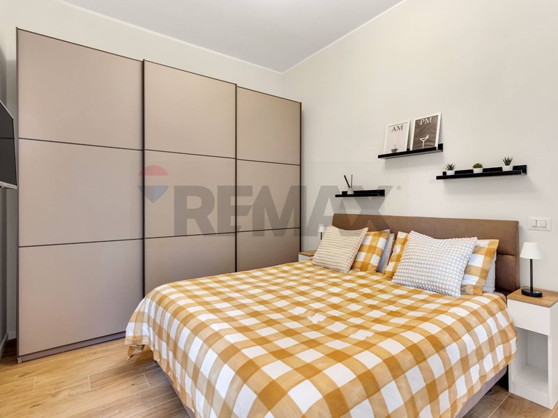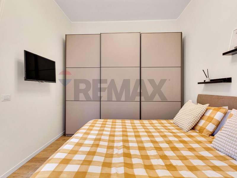 Ingresso diretto nella zona giorno molto luminosa con cucina a vista, completa di lavastoviglie e arredata con gusto. Un pratico ripostiglio / lavanderia, utilissimo per la gestione quotidiana della casa. Attraverso un comodo disimpegno si raggiungono la camera matrimoniale accogliente e il bagno moderno, completamente rinnovato con piatto doccia filo pavimento, sanitari filo muro ed impianto di cromoterapia.