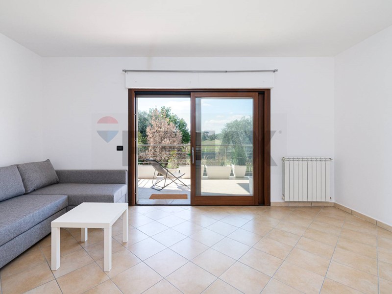 L'appartamento è composta da un ingresso con armadio, un soggiorno con parete a giorno e divano letto, angolo cottura completa di tutti gli elettrodomestici, bagno cieco con areazione forzata, condizionatore e zanzariera. La grande porta finestra scorrevole ci conduce sul terrazzo esposto a sud ovest da dove si possono godere suggestivi tramonti.