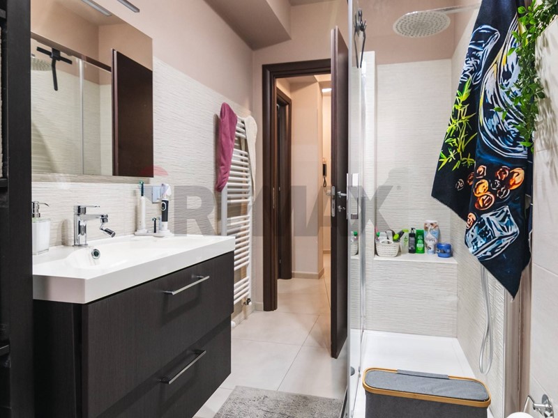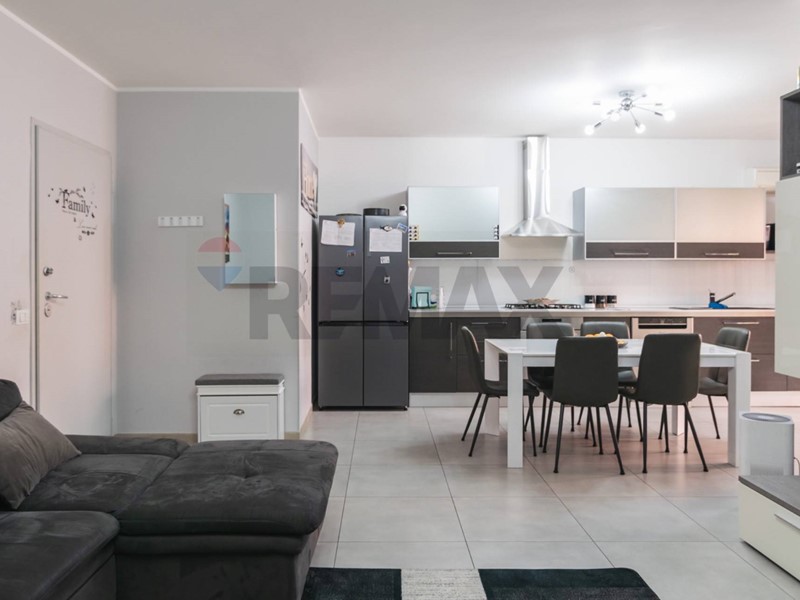 Lingresso si apre su un ampio e luminoso salone open space, un ambiente accogliente e moderno perfetto per vivere la casa in modo conviviale. La cucina, luminosa e funzionale, è collegata tramite porta finestra ad un piacevole terrazzino, ideale per rilassarsi allaria aperta, sorseggiare un caffè o momenti conviviali.