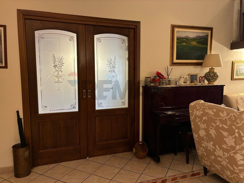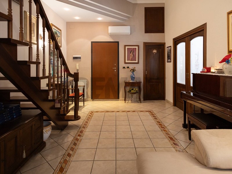 L'immobile distribuito su due livelli offre 195 mq totali commerciali di ambienti ampi e luminosi, ideali per una famiglia che desidera vivere senza rinunce e si presenta così composto: al piano terra la zona giorno con ingresso direttamente su un ampio salone, arredato con una elegante scala in legno di noce che rende l'ambiente caldo ed accogliente e un bagno di rappresentanza che completa la zona giorno.