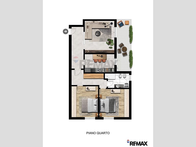 Lingresso ampio accompagna alla zona giorno e conduce alla zona notte. Il soggiorno, di comode dimensioni, è facilmente organizzabile tra zona living e zona pranzo. La cucina è separata e abitabile. Entrambi gli ambienti affacciano su un ampio terrazzo, ideale per momenti di relax allaperto.