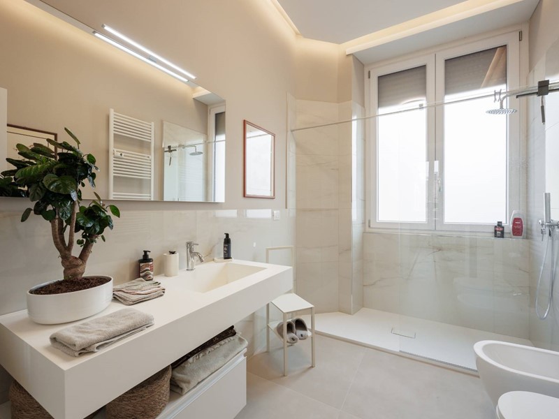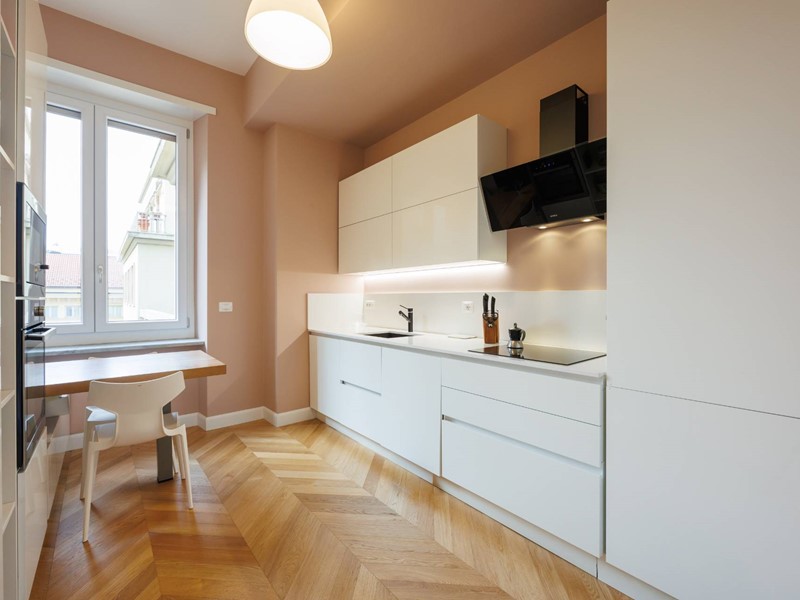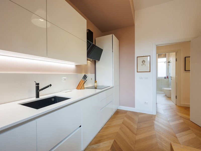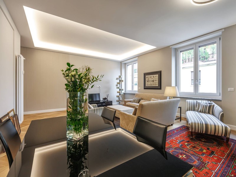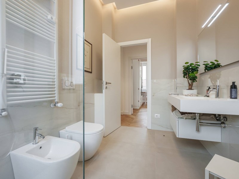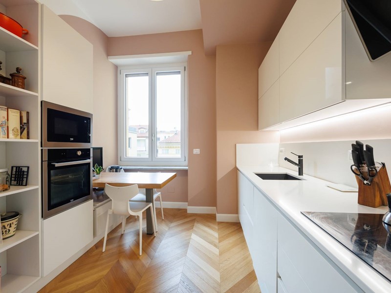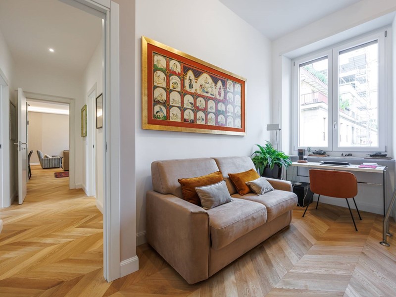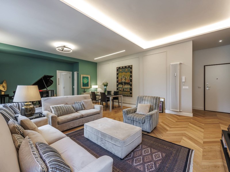 Lappartamento si distingue per la qualità della ristrutturazione, i colori ricercati delle pareti, lilluminazione studiata e lelegante parquet presente in tutti gli ambienti principali.