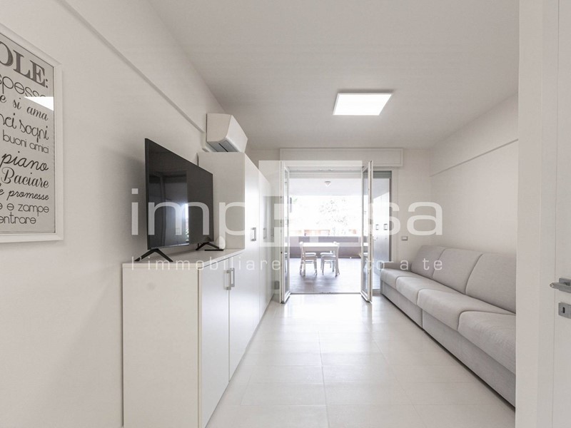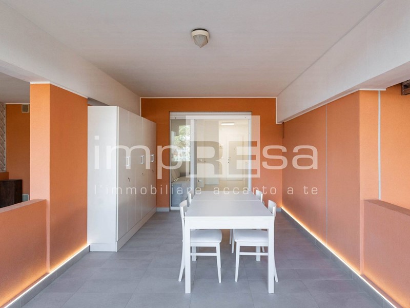 Limmobile dispone di un ampio terrazzo abitabile con piacevole affaccio sulla piscina e sul parco condominiale piantumato, perfetto per pranzi allaperto, momenti di relax o serate estive.
