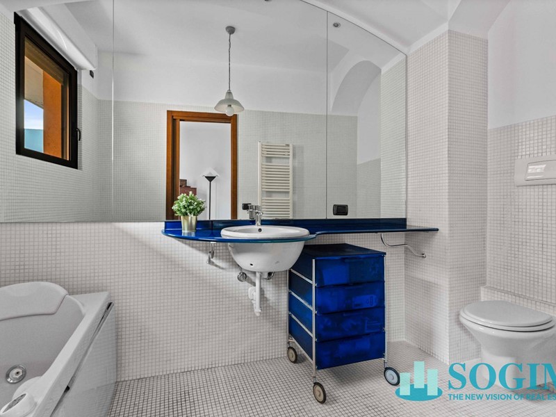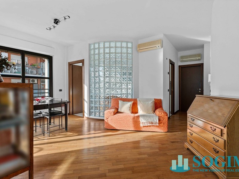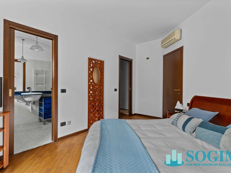 Caratteristiche dell'immobile: pavimentazioni in parquet in tutti i locali ad eccezione dei bagni dove sono posate piastrelle in ceramica; riscaldamento centralizzato, impianto di aria condizionata con split. Gli infissi sono in alluminio con doppio vetro, tapparelle motorizzate.