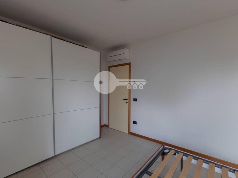 Ingresso nella zona giorno con angolo cottura e accesso al terrazzo privato. Il disimpegno porta alla zona notte dove troviamo la camera da letto matrimoniale e il bagno con doccia e servizi sospesi. Il bagno è dotato di sistema di areazione forzata essendo cieco. L'ambiente è luminoso grazie alle ampie finestre che si affacciano sul terrazzo esclusivo.