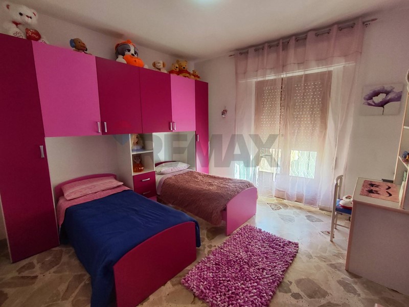 L'appartamento presenta una distribuzione funzionale degli spazi ed è composto da: ingresso su disimpegno, ampio soggiorno, cucina abitabile con accesso al balcone,, camera da letto matrimoniale, due camerette, wc con vasca, secondo wc con doccia e comodo ripostiglio.