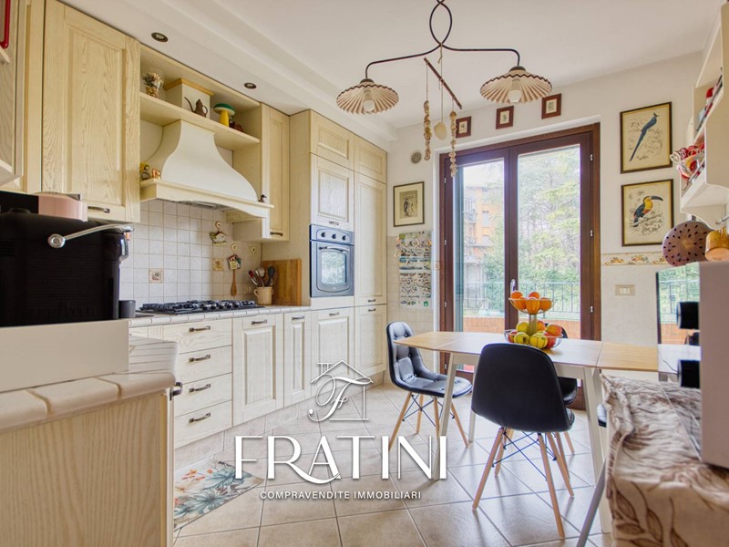 Lappartamento si apre su un ampio e luminoso soggiorno impreziosito dalla presenza del camino. Dal soggiorno si accede alla cucina abitabile tramite una elegante porta a scrigno; la cucina dispone inoltre di accesso diretto al balcone. Sempre dal soggiorno si raggiunge il disimpegno della zona notte dove troviamo due bagni, uno con vasca e uno con doccia, una camera matrimoniale, una camera doppia e una camera singola. Dal soggiorno e dalla camera singola si accede alla terrazza con splendida vista panoramica sulla vallata. Limmobile presenta pavimentazione in ceramica, riscaldamento a metano con radiatori, infissi in legno con doppio vetro e persiane in alluminio. Il soggiorno è dotato di camino con impianto di diffusione dellaria calda in tutte le stanze. Completano la dotazione dellappartamento portoncino blindato e impianto di allarme volumetrico e perimetrale.