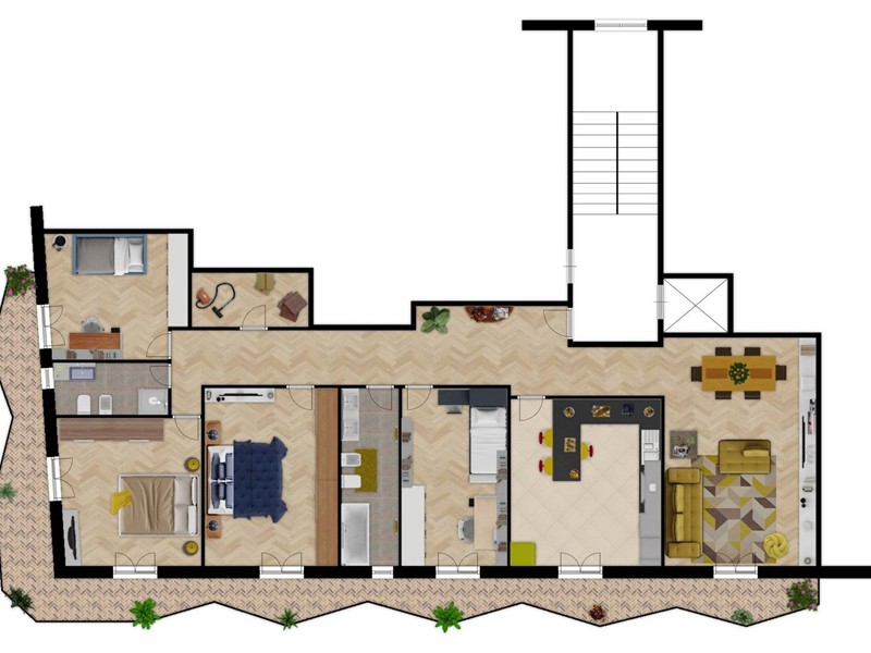 A valorizzare ulteriormente la proprietà è il terrazzo ad angolo che circonda lintero appartamento, uno spazio esterno prezioso e vivibile .