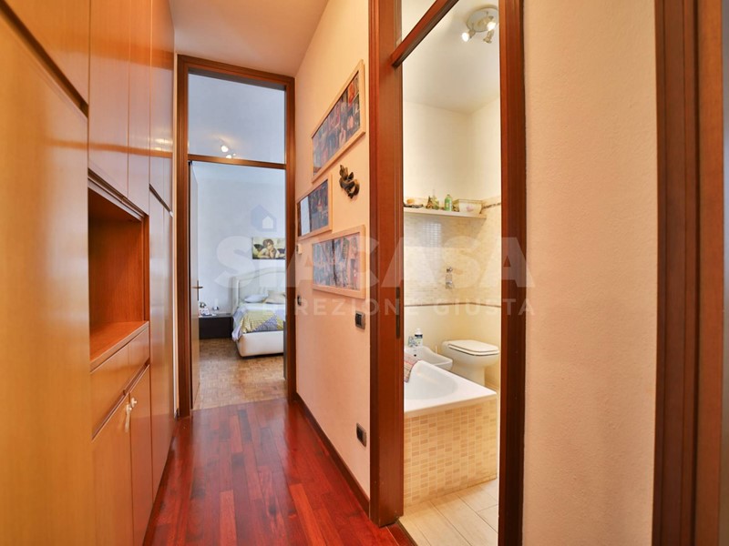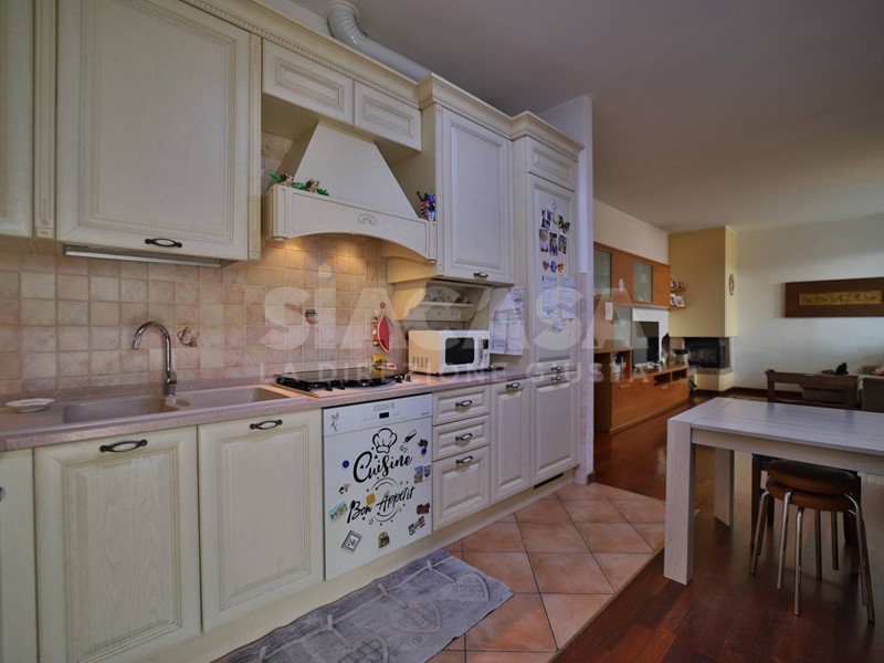 ingresso con ampio soggiorno con camino adibito a zona conversazione e zona pranzo, cucina abitabile a vista, disimpegno notte con 2 camere letto e doppi servizi finestrati.adibito a guardaroba e bagno finestrato.