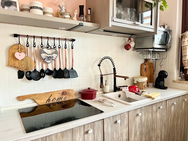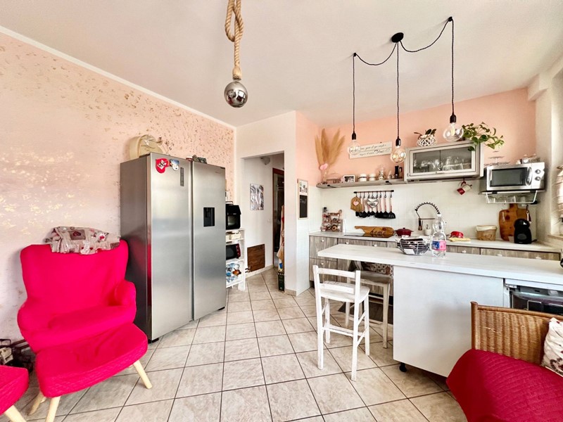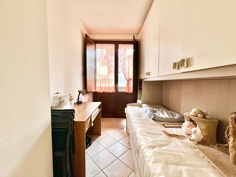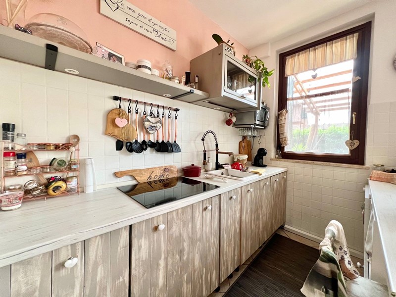 L' appartamento è composto da un open space cucina e soggiorno, camera matrimoniale, bagno finestrato con doccia e una camera singola con accesso al balcone.