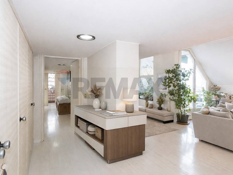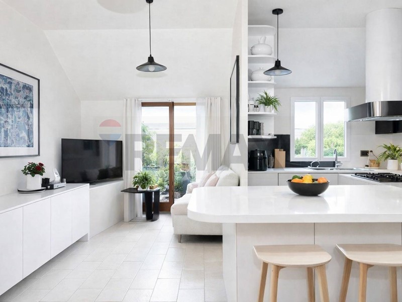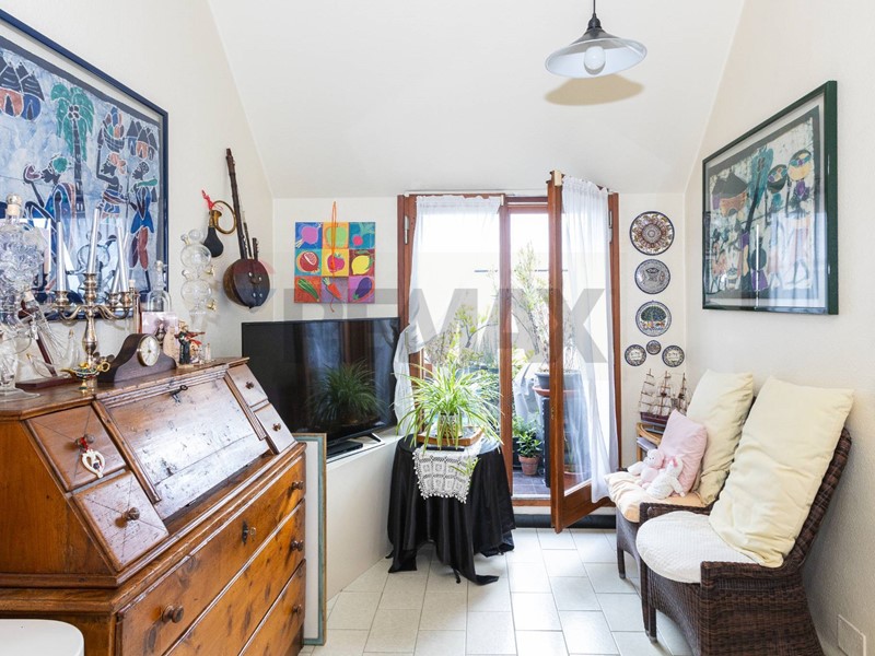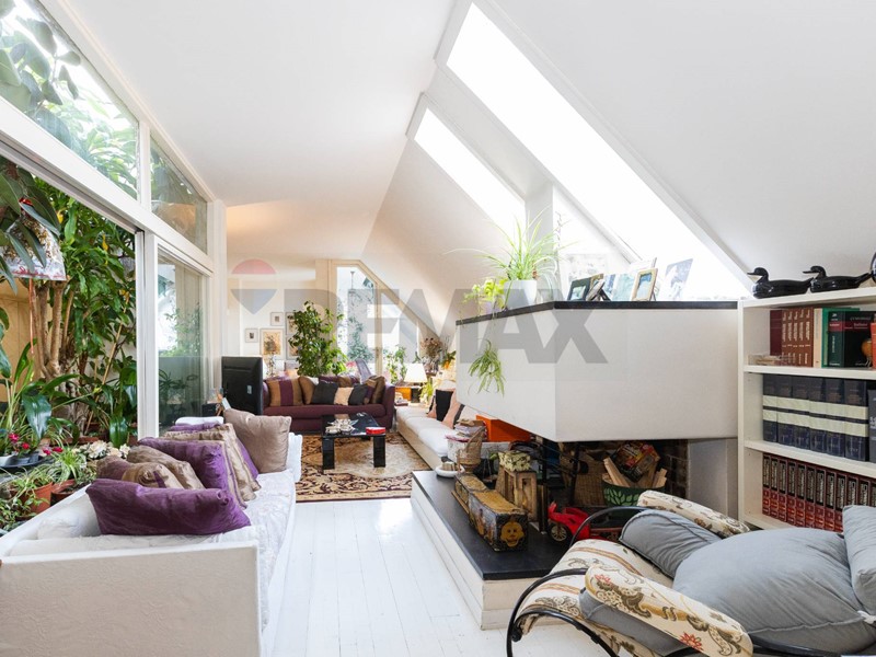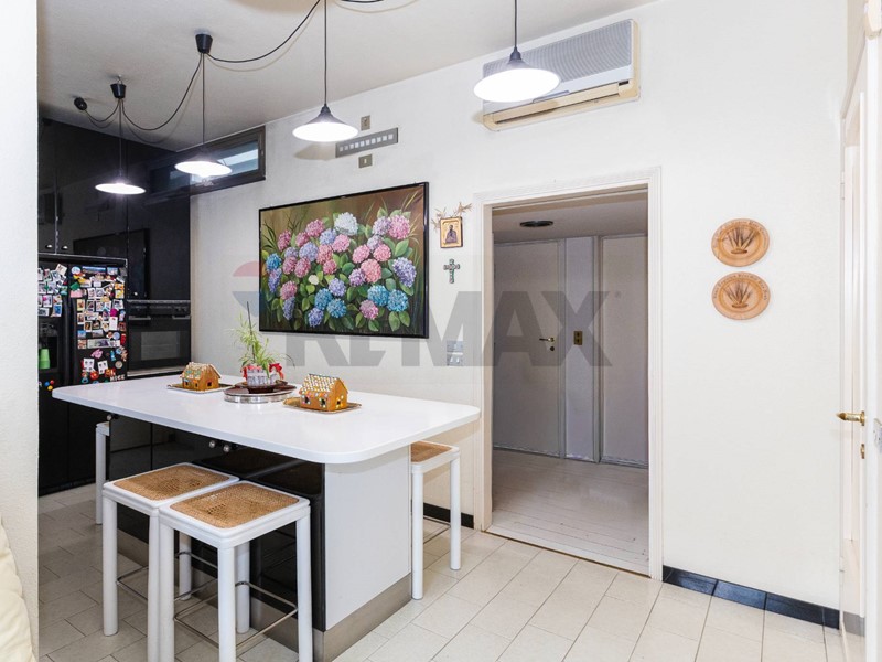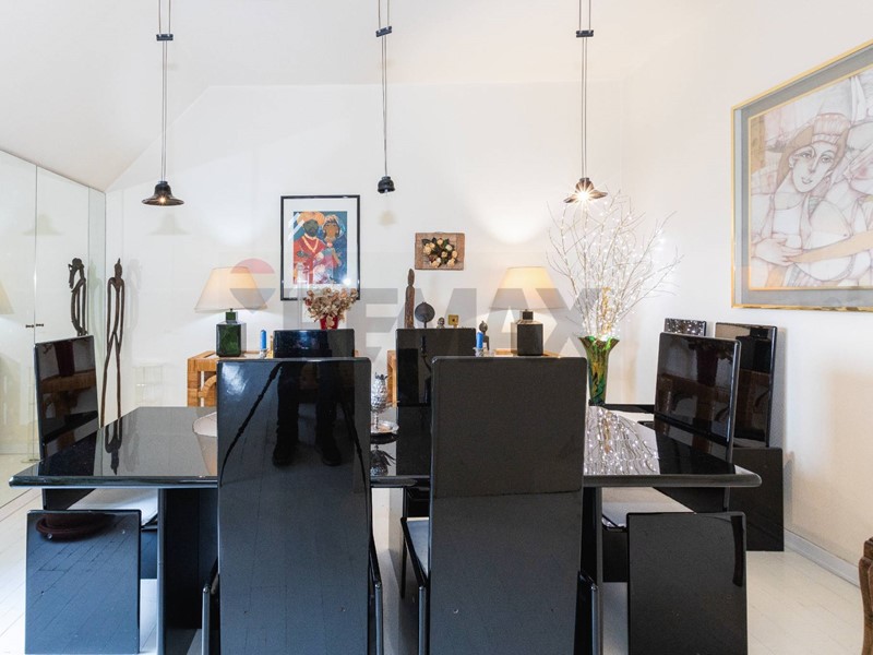 Lingresso conduce a un ampio corridoio con giardino dinverno interno, elemento architettonico di grande charme, che introduce alla zona giorno composta da soggiorno separato con accesso diretto al terrazzo e cucina ampia e abitabile.
