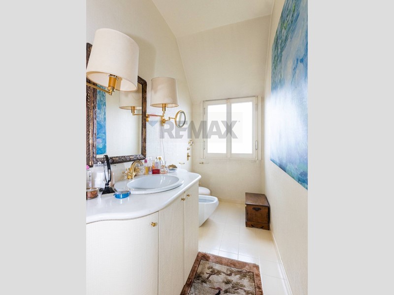 La zona notte ospita quattro camere matrimoniali, tre bagni, una lavanderia e un ripostiglio in quota.