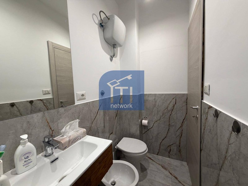 L'appartamento si trova al primo piano con ascensore, composto da salone con angolo cottura, con uscita all' ampio balcone abitabile, camera matrimoniale con finestra e servizio con box doccia finestrato.