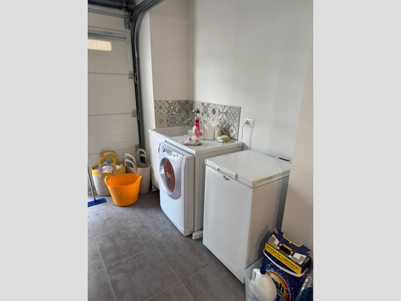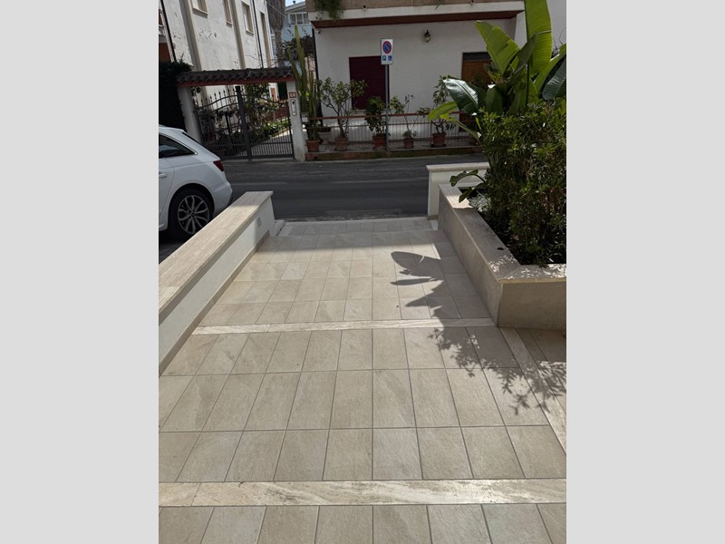Situato al primo piano di una palazzina di recente costruzione, gode di una posizione strategica e di un'ottima esposizione al sole, con ingresso indipendente con tre comodi posti auto ed ampio giardino, inoltre si ha un comodo garage con possibilità di renderlo vivibile come taverna con a servizio tutto il cortile esterno, all'interno predisposizione di scarichi, aria condizionata con split anche ad aria calda, comodo bagno con box doccia.