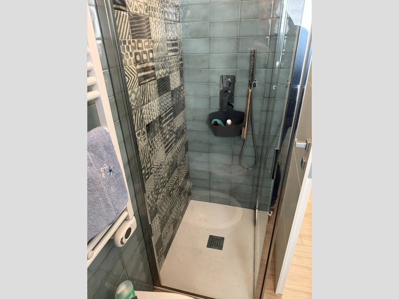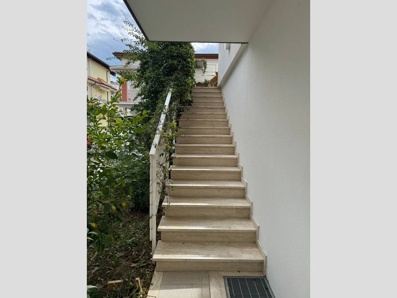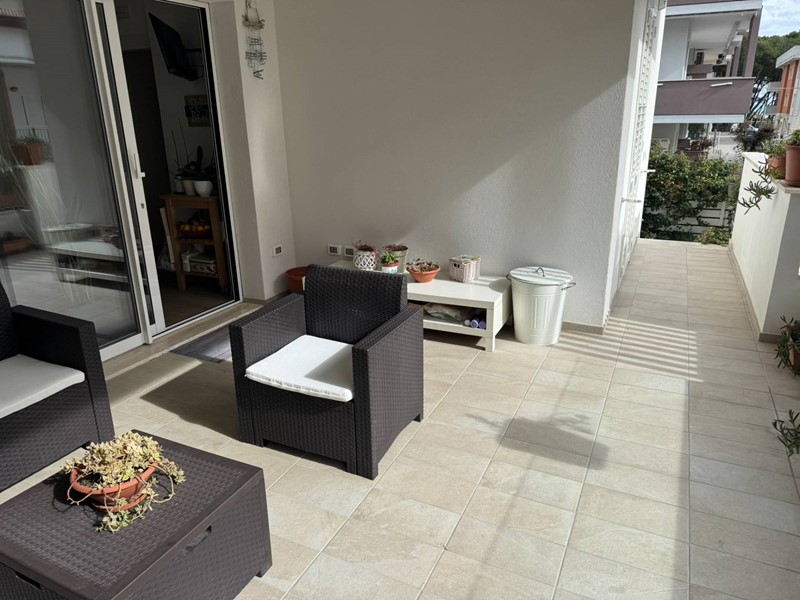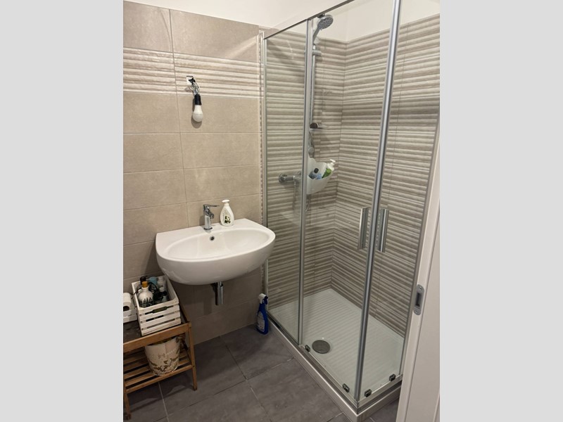 L'anno di costruzione è del 2025. L'appartamento è servito da ascensore ed ha un doppio accesso, dalla scala che sale dal giardino o dall'ingresso condominiale. L'immobile in perfette condizioni, ha un ampio terrazzo completamente coperto che può essere usato anche nei periodi meno miti, ampia vetrata scorrevole che apre sul soggiorno con angolo cottura, disimpegno zona notte, camera matrimoniale con uscita sul terrazzo, ampio bagno con box doccia e finestra, camera doppia con uscita sul balcone.