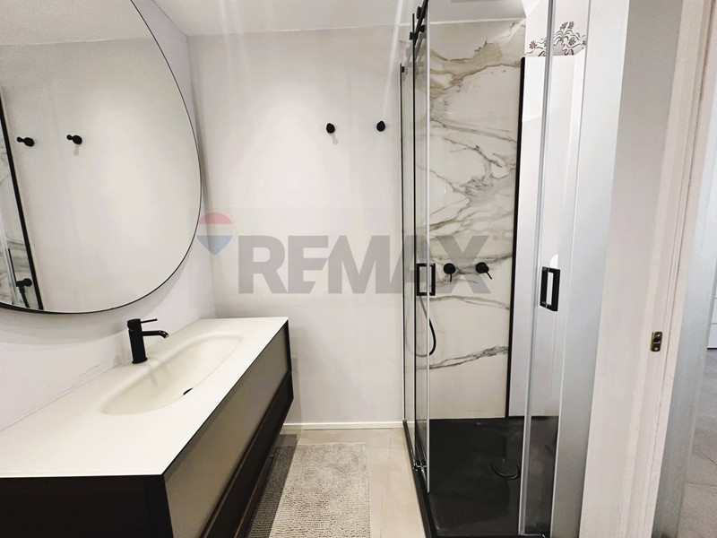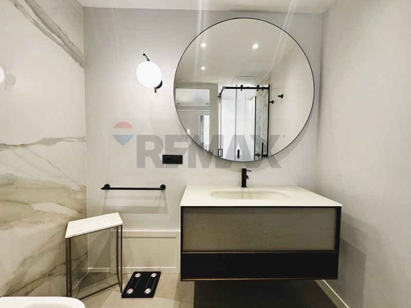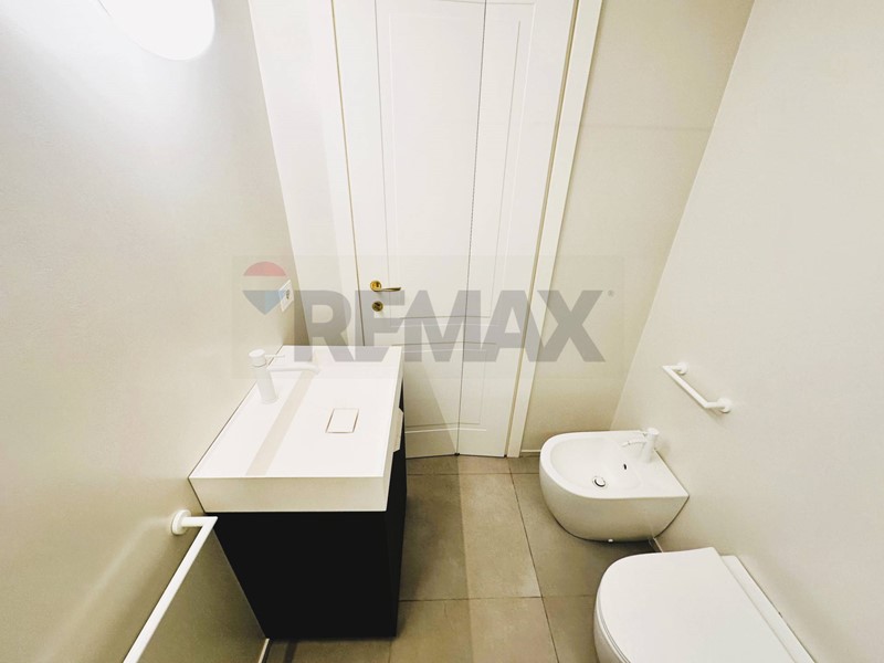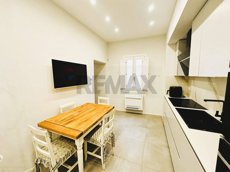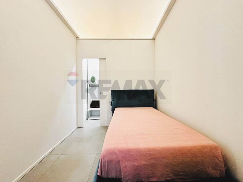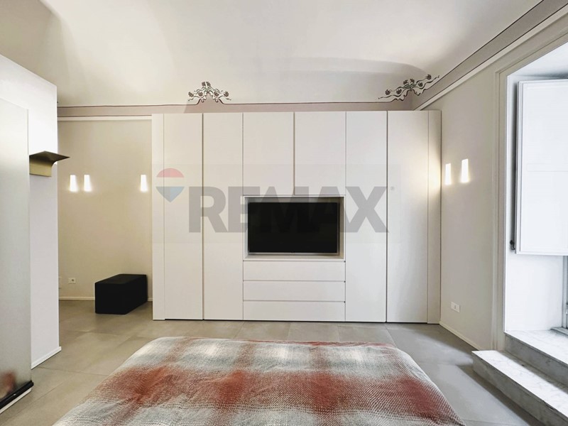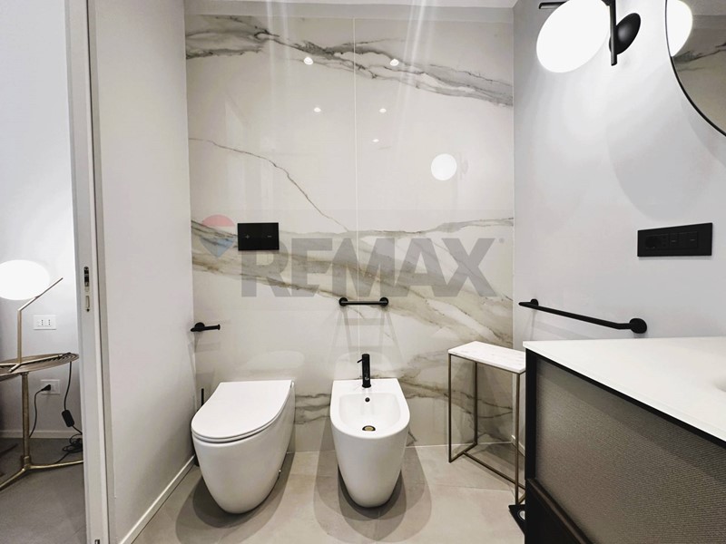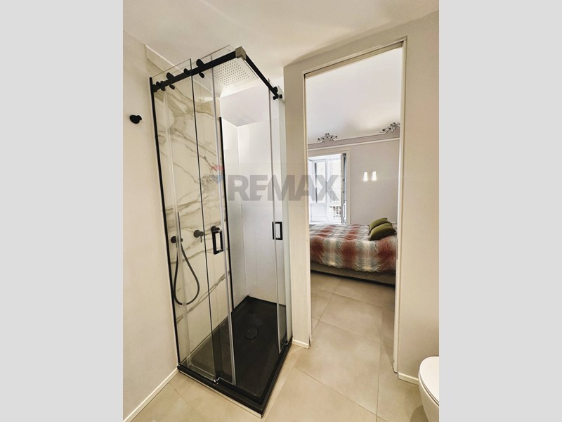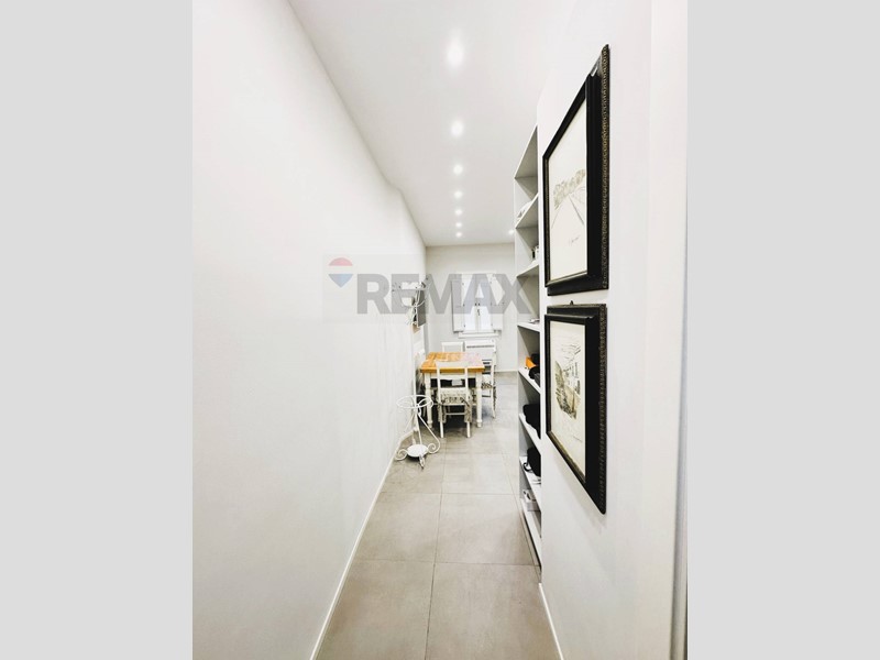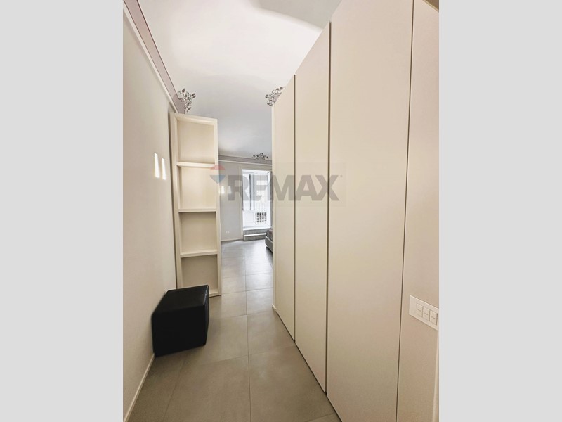 L'appartamento con ingresso da via Roma, è composto da cucina, salone, cameretta con cabina armadio, camera con balcone e bagno privato, secondo bagno con annessa zona lavanderia.