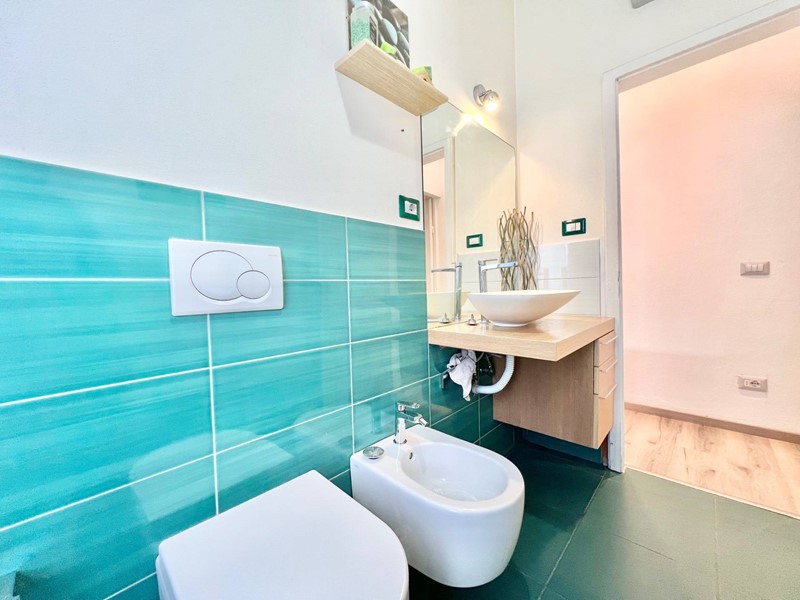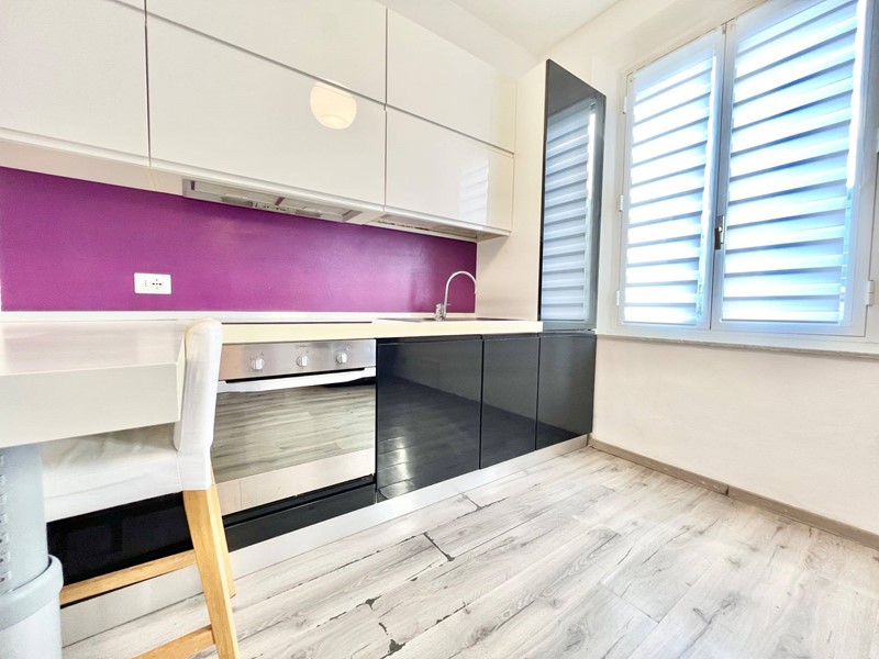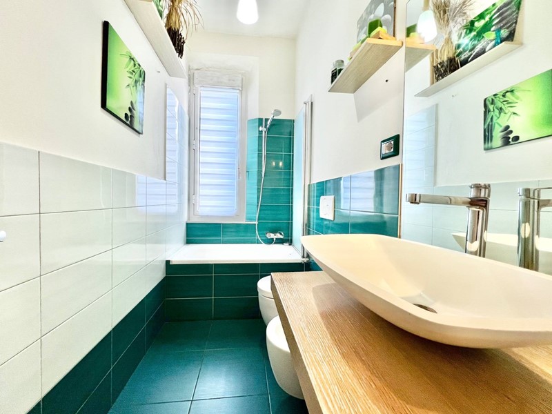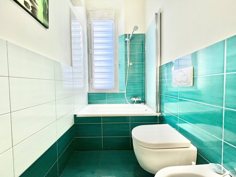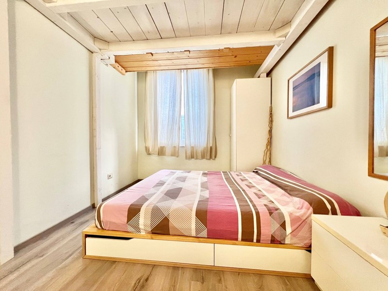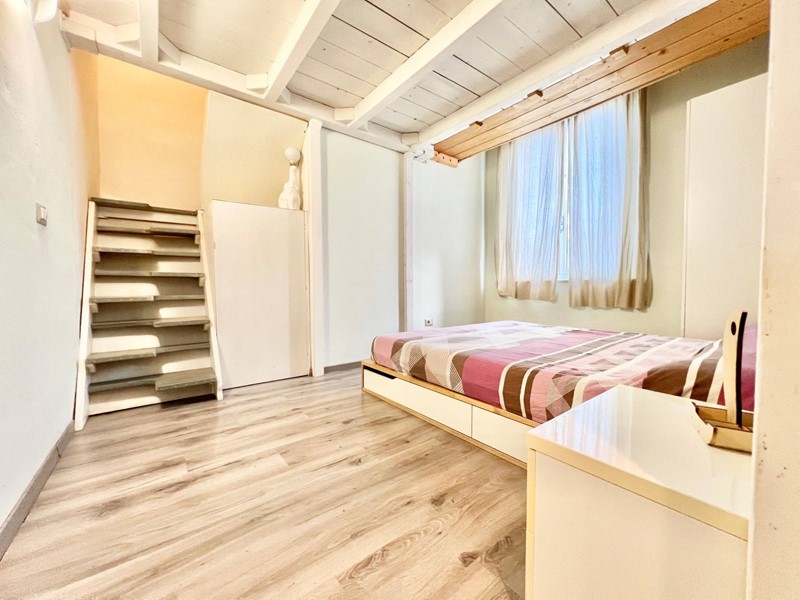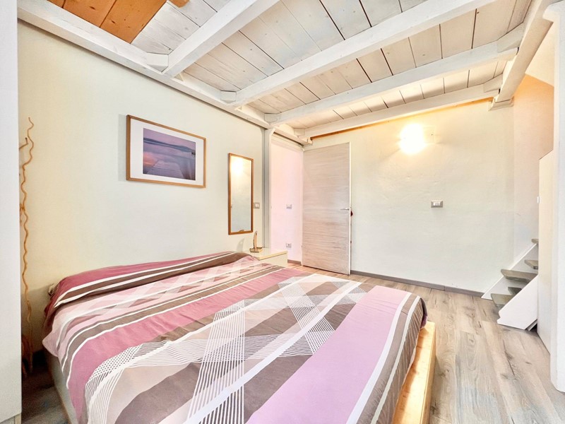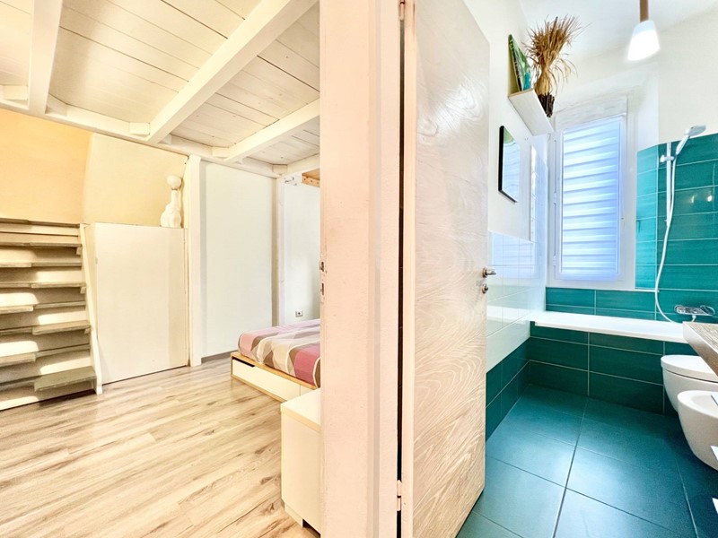 La zona notte è composta da una camera matrimoniale ben illuminata e un bagno finestrato con vasca, perfetto per concedersi momenti di relax.