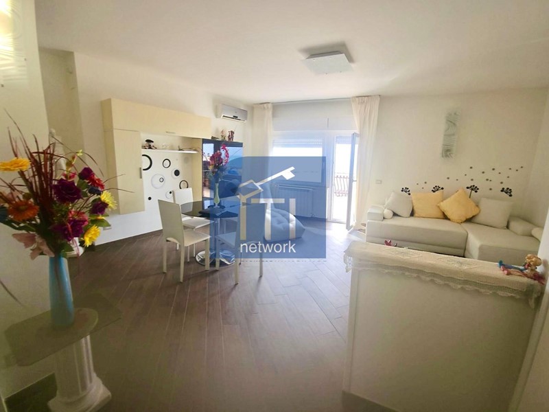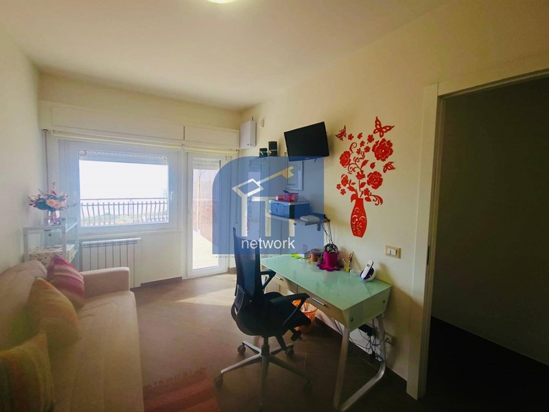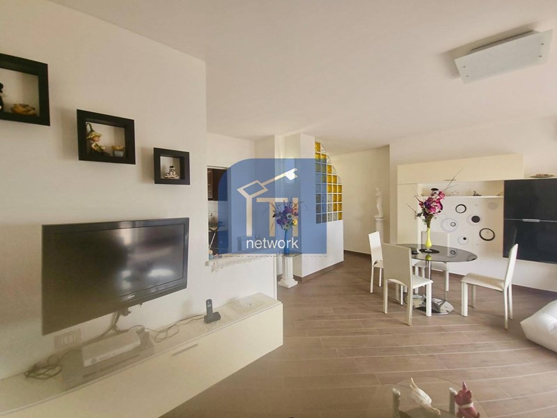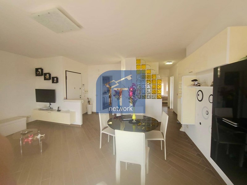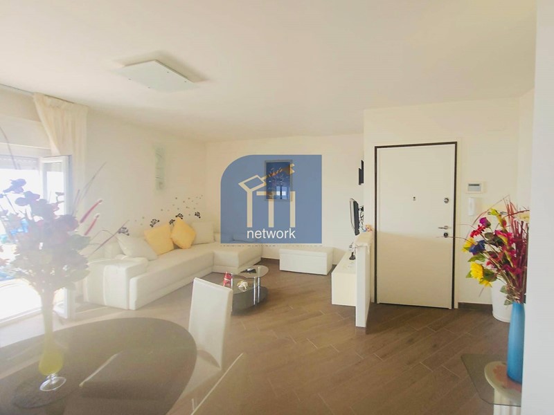 L' appartamento è composto da ampio salone, cucina abitabile, 2camere matrimoniali , ogni ambiente ha l'uscita diretta al terrazzo perimetrale e servizio finestrato.