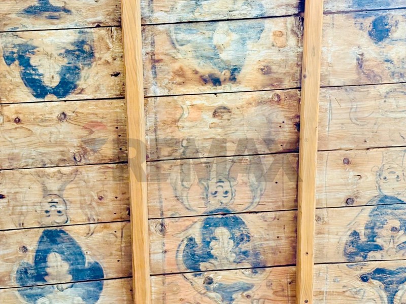 - soffitto a cassettoni in parte affrescato